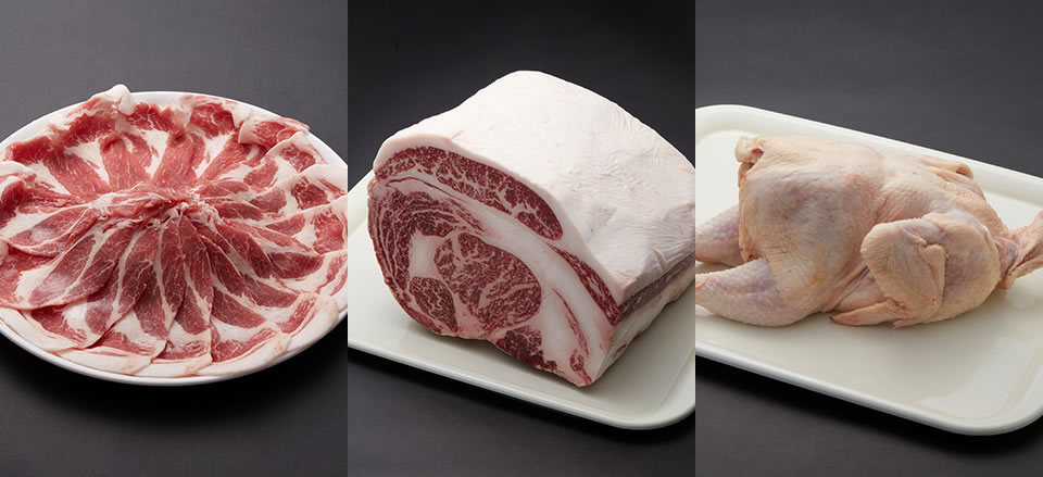 アメリカ産 三元豚、カナダ産 大麦仕上三元豚、輸入 麦そだち四元豚、宮崎県産 日南もち豚、南九州産 霧島山麓SPF豚 等